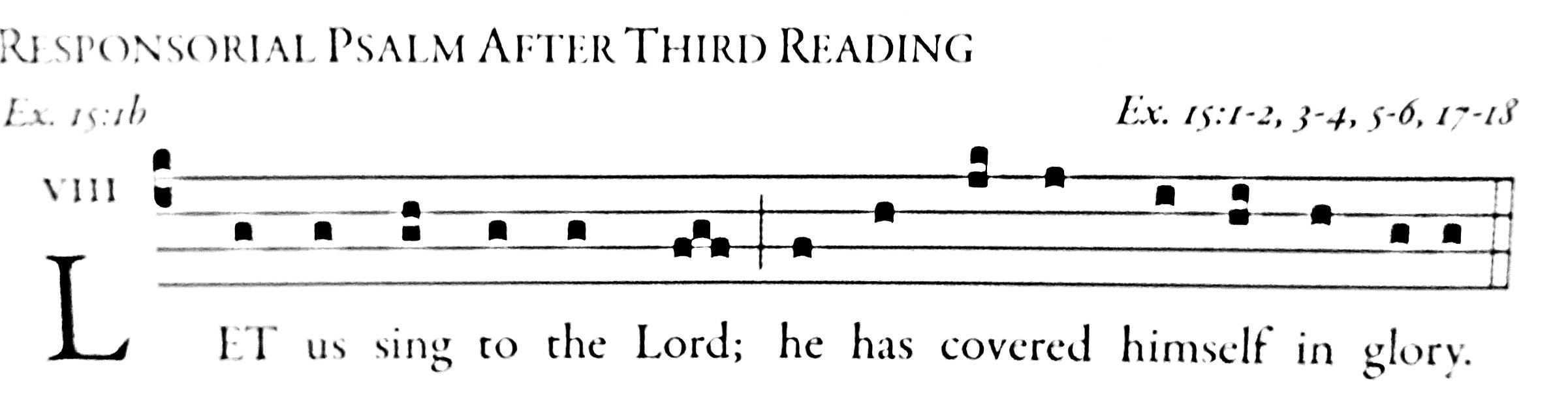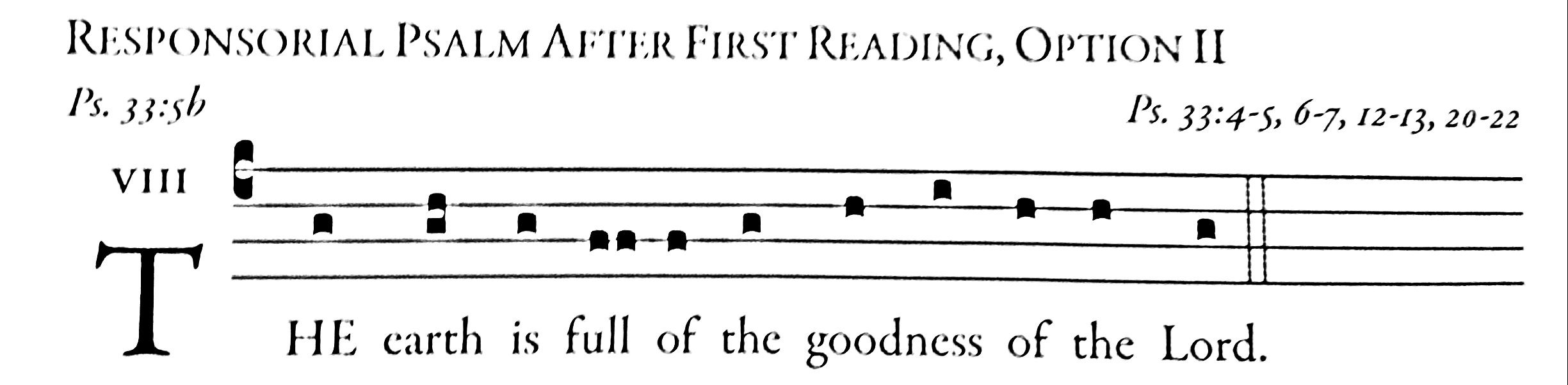 Simple English Proper (Lumen Christi Gradual and Modal Responsorial Psalms). The Roman Missal gives us these Bible verses to be sung per the examples recorded: the congregation joins the cantor for the antiphon (printed), then the cantor sing the Psalm alone, then the congregation and cantor repeat the antiphon.
