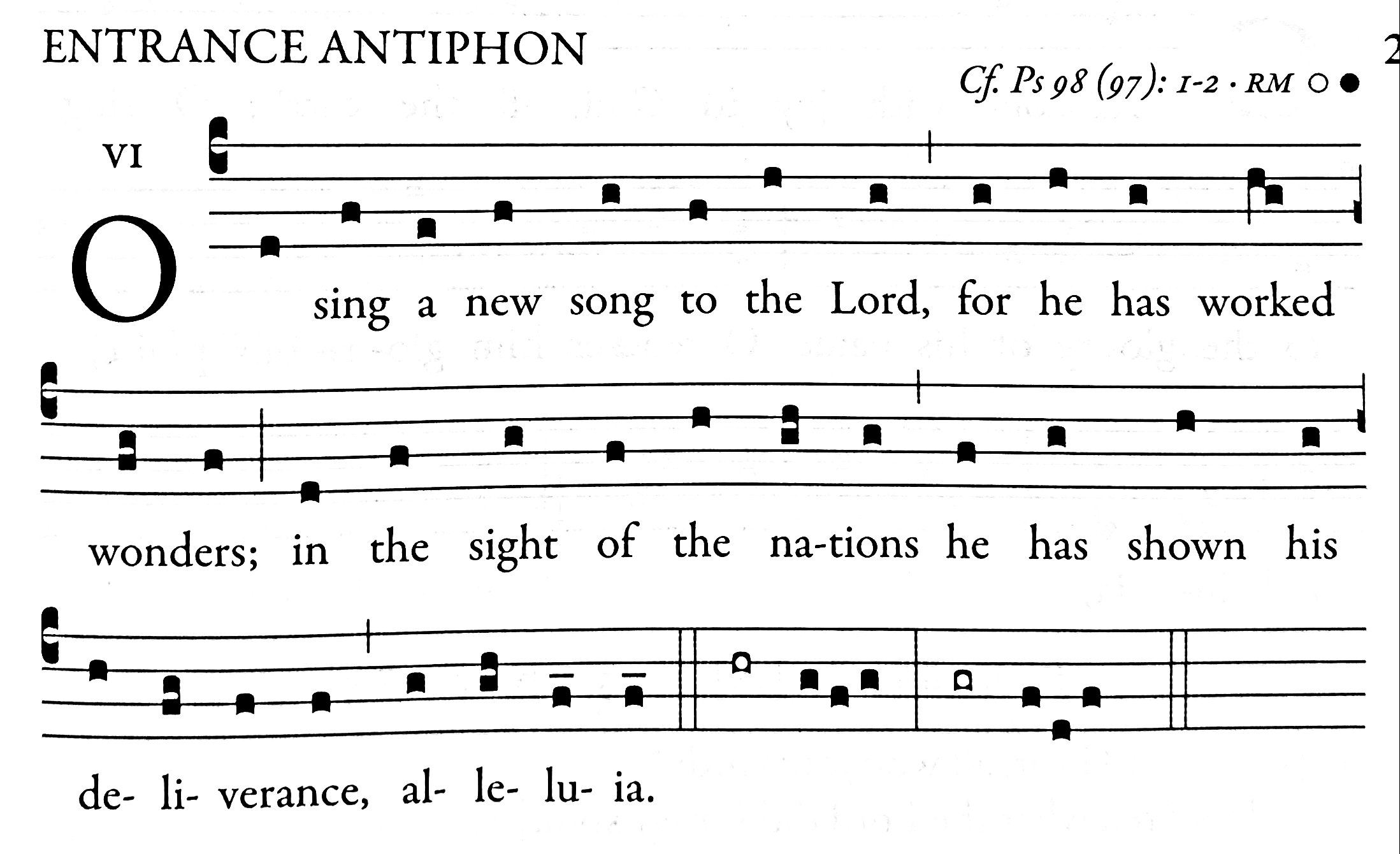 Click to hear Introit (English antiphon – English verse – Latin antiphon, verse, Gloria patri)