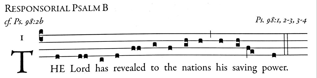 Simple English Proper (Lumen Christi Gradual and Modal Responsorial Psalms). The Roman Missal gives us these Bible verses to be sung per the examples recorded: the congregation joins the cantor for the antiphon (printed), then the cantor sing the Psalm alone, then the congregation and cantor repeat the antiphon.