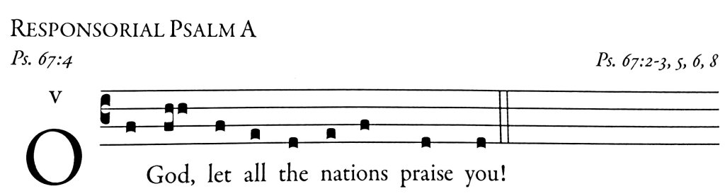 Simple English Proper (Lumen Christi Gradual and Modal Responsorial Psalms). The Roman Missal gives us these Bible verses to be sung per the examples recorded: the congregation joins the cantor for the antiphon (printed), then the cantor sing the Psalm alone, then the congregation and cantor repeat the antiphon.