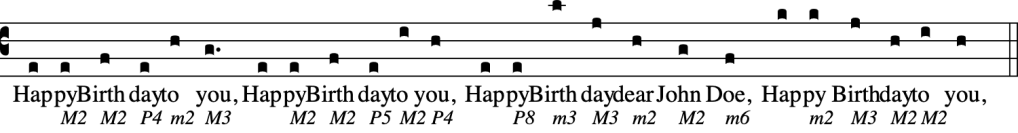 Is it overly ambitious to train one’s ear to sing the m2, M2, m3, M3, P4, P5 and P8 intervals properly? Should not only professional singers do this? Consider that when you learn these seven (7) intervals, you will still be one interval short of those used in singing “Happy Birthday” (see below). Do you consider that singing “Happy Birthday” properly should be only done by professionals?… I did not think so either.