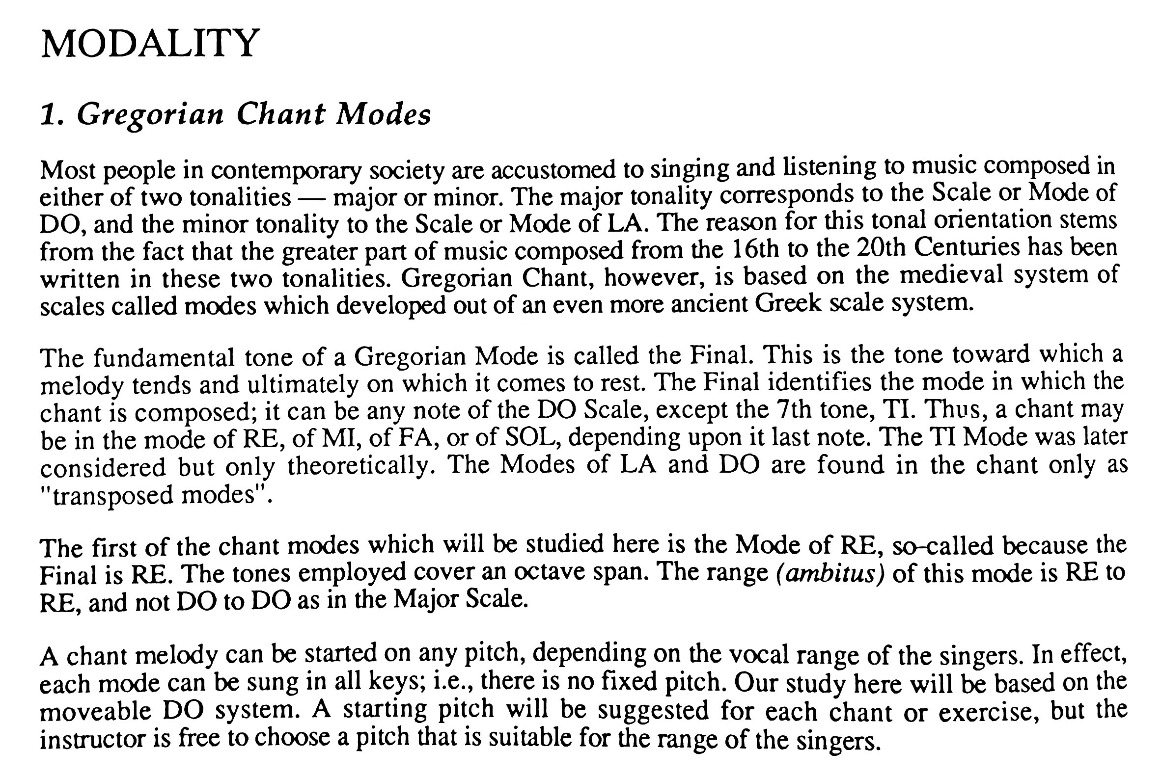 - For more information on modality, read the rest. All the information below is extracted from the “Gregorian Chant Practicum, Ward method” published by the Catholic University of America Press, Washington, DC.