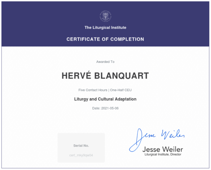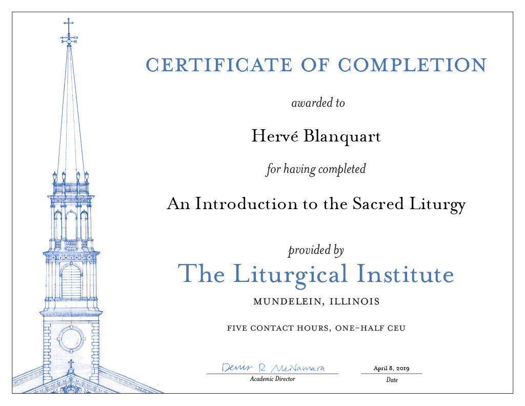 Better understanding the liturgy: In the California parishes I attended, I heard the Roman Gradual was ” only for experts” and therefore ignored. This answer did not match my own experience, so I decided to take (so far) 60 hours of on-line classes with the Liturgical Institute. I highly recommend those classes. Why could not every Church music minister take at least the FREE 5-hour class “Introduction to the Sacred Liturgy”? That seems like a very low bar to me. How about just the “directors” taking it? We would save a lot of time towards a better implementation of the Vatican II Council instructions on Sacred Liturgy if classes from the Liturgical Institute were better known in our choir lofts…