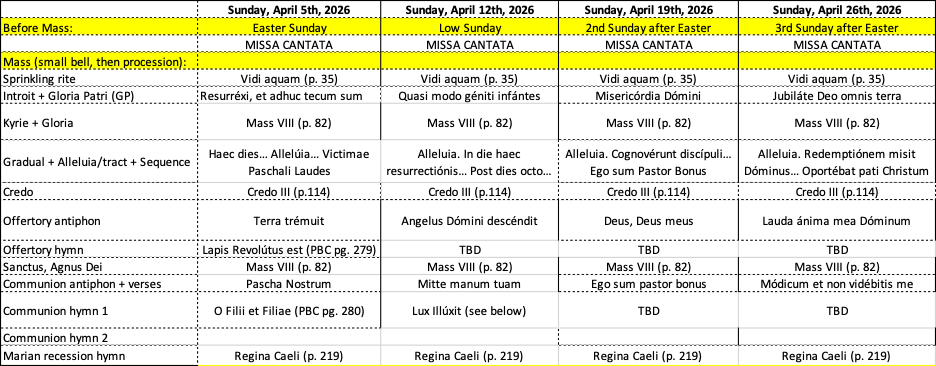 Tuesday, April 21 (5:00-6:30pm) – Propers for April 26 and May 3 (coming)