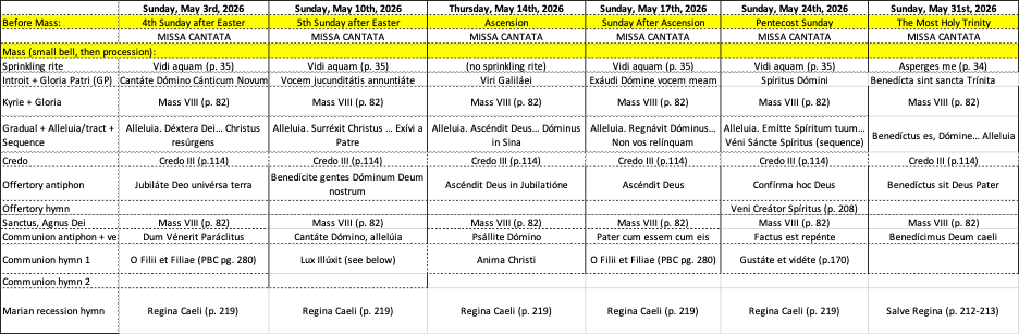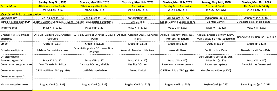 Tuesday, May 12 (5:00-6:30pm) – Propers for May 17 and 24