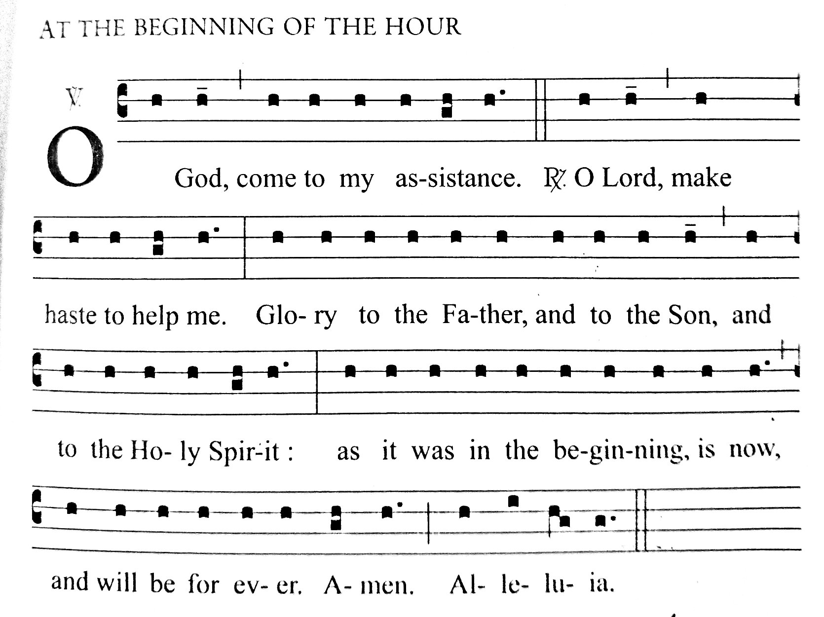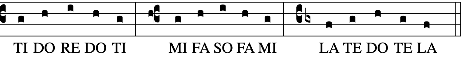We remember from the first Elementary Music Literacy video that a “scale” is built from ensembles of six notes (Hexachords) symmetrical around one single half step. This limits us to ONLY 3 COMBINATIONS of 3 CONJUNCT NOTES we can possibly encounter when we sing most Church music which is diatonic, not chromatic. This Book of Compline is a perfect first foray into the diatonic scale. The three possible combinations of three conjunct notes differ in where the half-step is: (1) between the top two notes, (2) between the bottom two notes, (3) there is no half-step between the three notes. All three combinations are found in singing compline. Click on the links above to shortcut directly to examples of each.