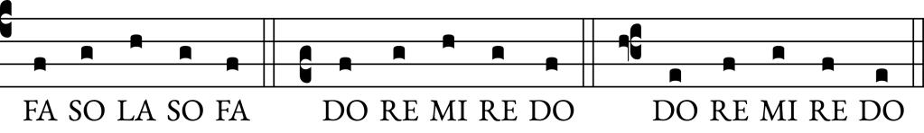In the mass, we practice these 4 notes (DO RE MI FA) in the Preface Dialogue (click to hear and practice).